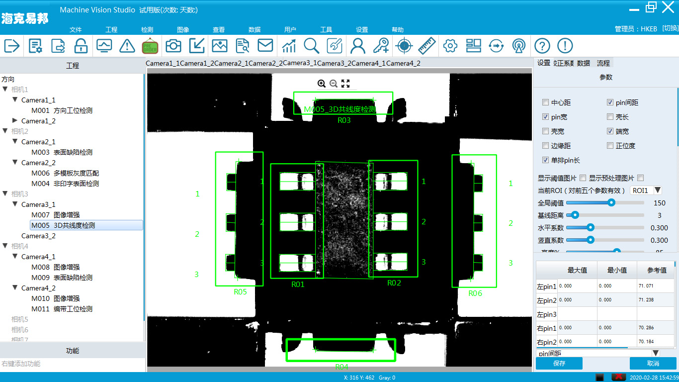 本系統采用四個相機,分為四個工位對半導體芯片進行檢測,分別是: