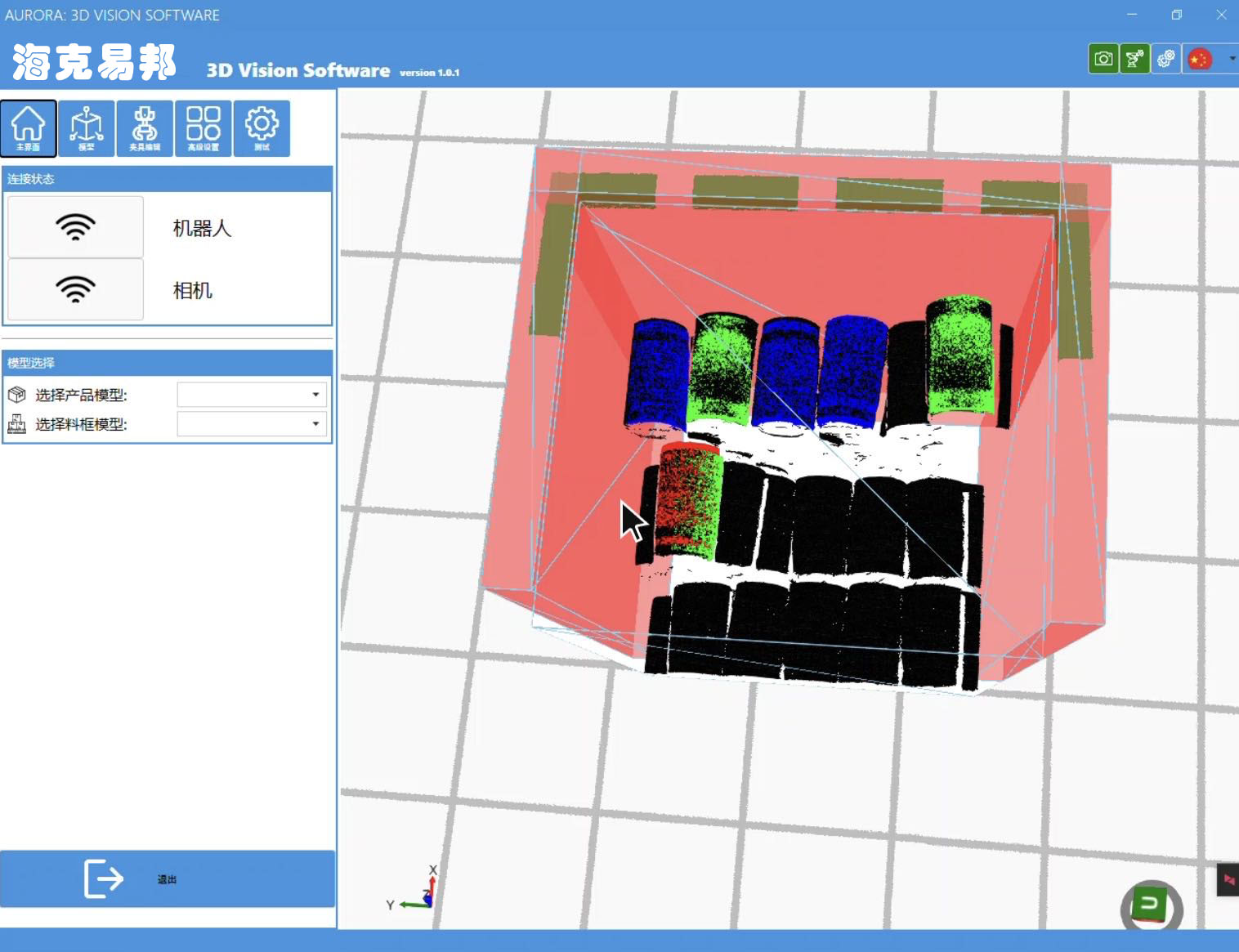 采用3D結(jié)構(gòu)光相機實時定位缸套姿態(tài),然后控制機器人將缸套從料框中抓取到產(chǎn)線上進行加工。該系統(tǒng)可以根據(jù)周邊設(shè)備干涉及產(chǎn)品姿態(tài)實現(xiàn)自動避障, 選擇時間最短或距離最優(yōu)的路徑,自動規(guī)劃抓取以及從料框退出的軌跡。