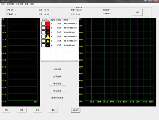 當圖像定位好后,根據(jù)檢測區(qū)域內極片表面是否有褶皺、缺口、開裂、掉料、粘料、氣泡、漏箔等缺陷超過設置的灰度差值提取表面的缺陷,并提示缺陷位置及顯示缺陷大小。輸出相應檢測信號。