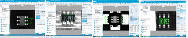 工位四:編帶工位檢測:引腳站高共面度、引腳翹起、有無器件檢測、有無印字、反轉或側翻、引腳檢測。