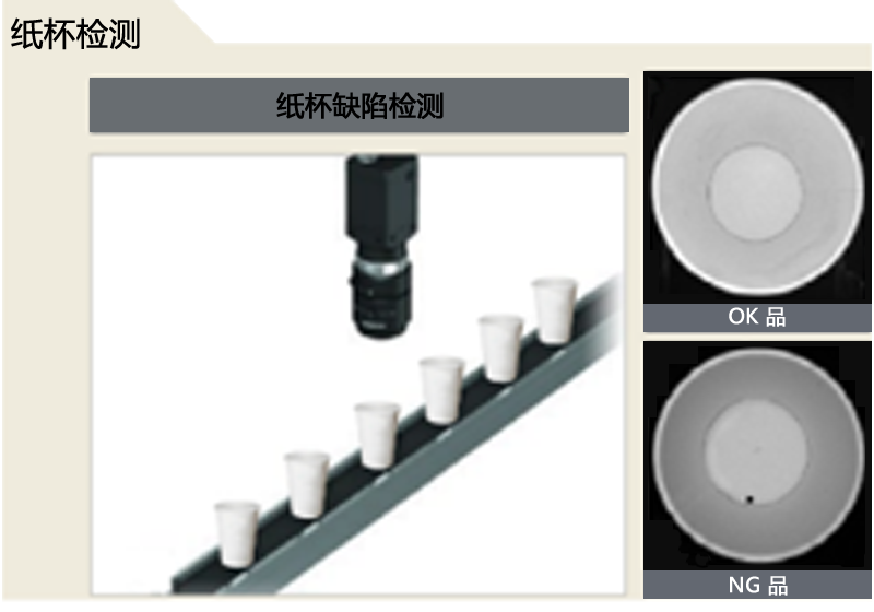 功能:紙杯口部、紙杯底部缺陷檢測、污漬檢測,檢測結(jié)果IO信號輸出。