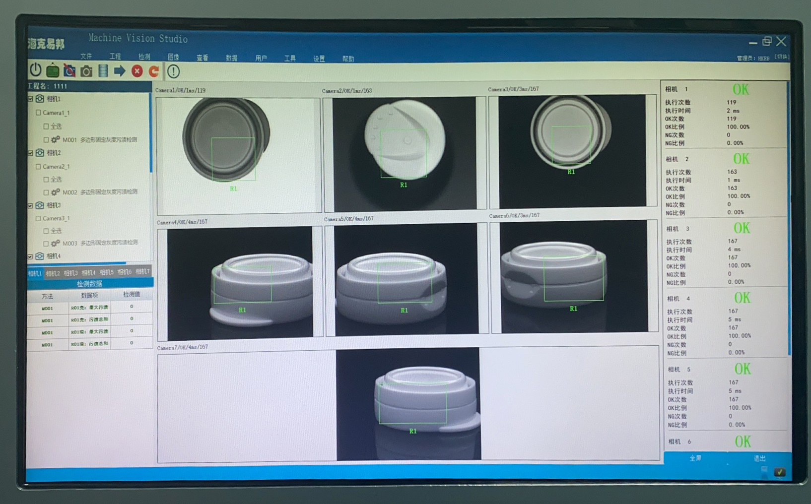 2.速度快、效率高、成本低,機(jī)器視覺檢測數(shù)量能達(dá)到250個(gè)/min,提高了生產(chǎn)效率,節(jié)約了后面的檢測人員的人力成本;